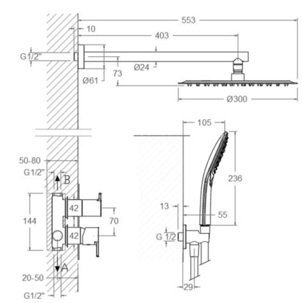Monomando de ducha empotrado 941512RP300, cromo